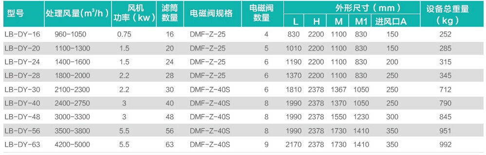 LB-DMCY-30-----LB-DMCY-63選用布袋規(guī)格:Φ130*1300