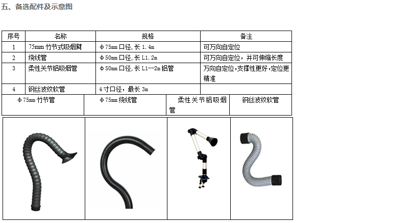 ◆機(jī)器可配萬向吸煙臂,可隨意變向、自定位(長(zhǎng)度可根據(jù)客戶要求定制)。也可接軟管。端部裝以大型集煙罩,吸煙范圍廣闊。