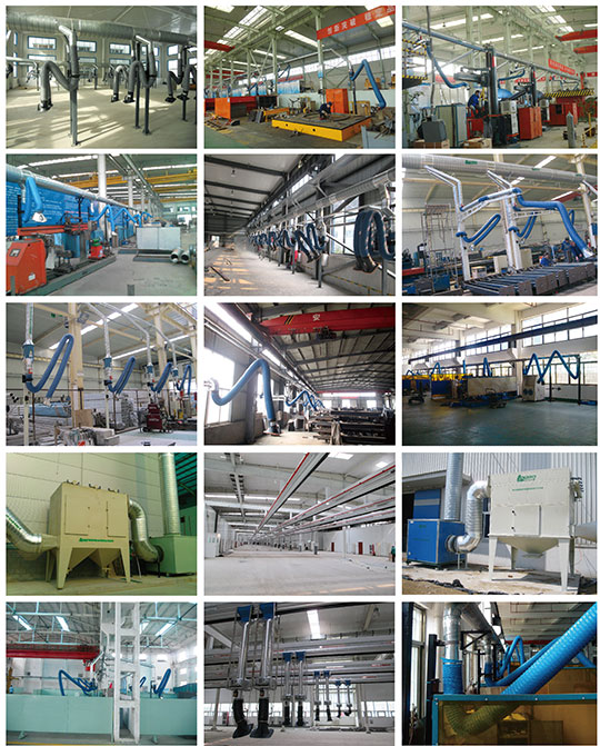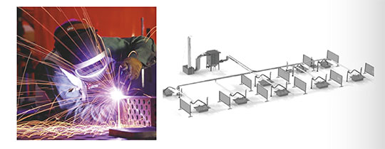 車間產生的煙塵由捕集裝置瞬間捕集收集后,經采用漸變管徑式(目的是平衡管路末端風速風量)的主管道進入除塵器,煙塵在除塵器內被高效凈化濾件阻截凈化,顆粒物在風機負壓作用下附著在濾件外側,脈沖閥在控制儀的控制下,每隔一定時間,自動對系統濾件由里至外進行反吹清灰,反吹過程中顆粒物落入灰斗內收集,灰斗內積累到一定量的顆粒物后,需要外運處理。在風機的作用下。凈化后的達標氣體由煙囪排出。