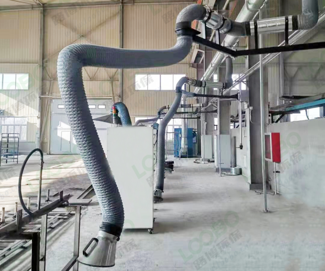 本套整體焊接除塵凈化系統工藝幾乎應用在工業制造業各個工序,特別是符合大工件固定點位的收集,焊接煙塵造成的車間大氣污染問題現在是很多企業問題,但對于車間上面有行車的企業來說這種收集方式是很有用的,特別是投資費用低,效果明顯,環保認可!俗話說“兵馬未動,糧草先行”,只有做好車間內大氣污染防控措施才能更好提高焊接質量及效率。
